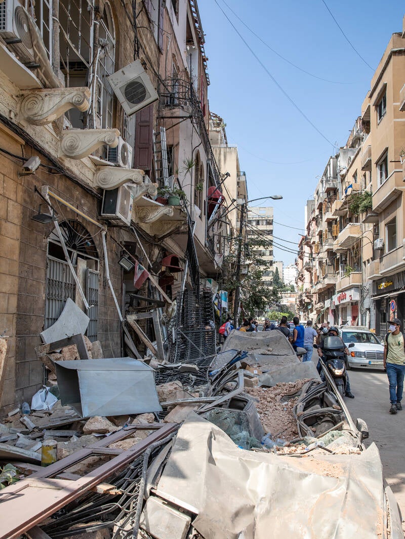 Nur einen Tag später sind mein Kollege Jan Langshausen und ich in der durch die Explosion völlig zerstörten Hafenmetropole – trotz der geltenden Corona-Auflagen. Die Fenster unseres Hotelzimmers waren notdürftig mit Pappe vernagelt. Wir waren die ersten westlichen Reporter, die mit dem deutschen THW am Ground Zero waren.